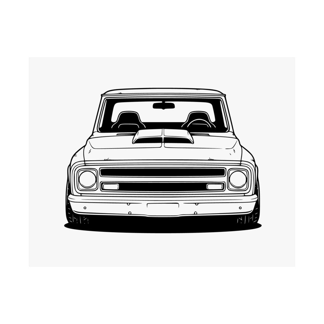 C10 Pickup — bold black and white vector art. Perfect for the garage, office, or...