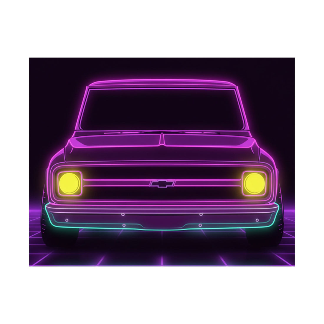 Chevy C10 Pickup (1967-72) Neon Synthwave Poster