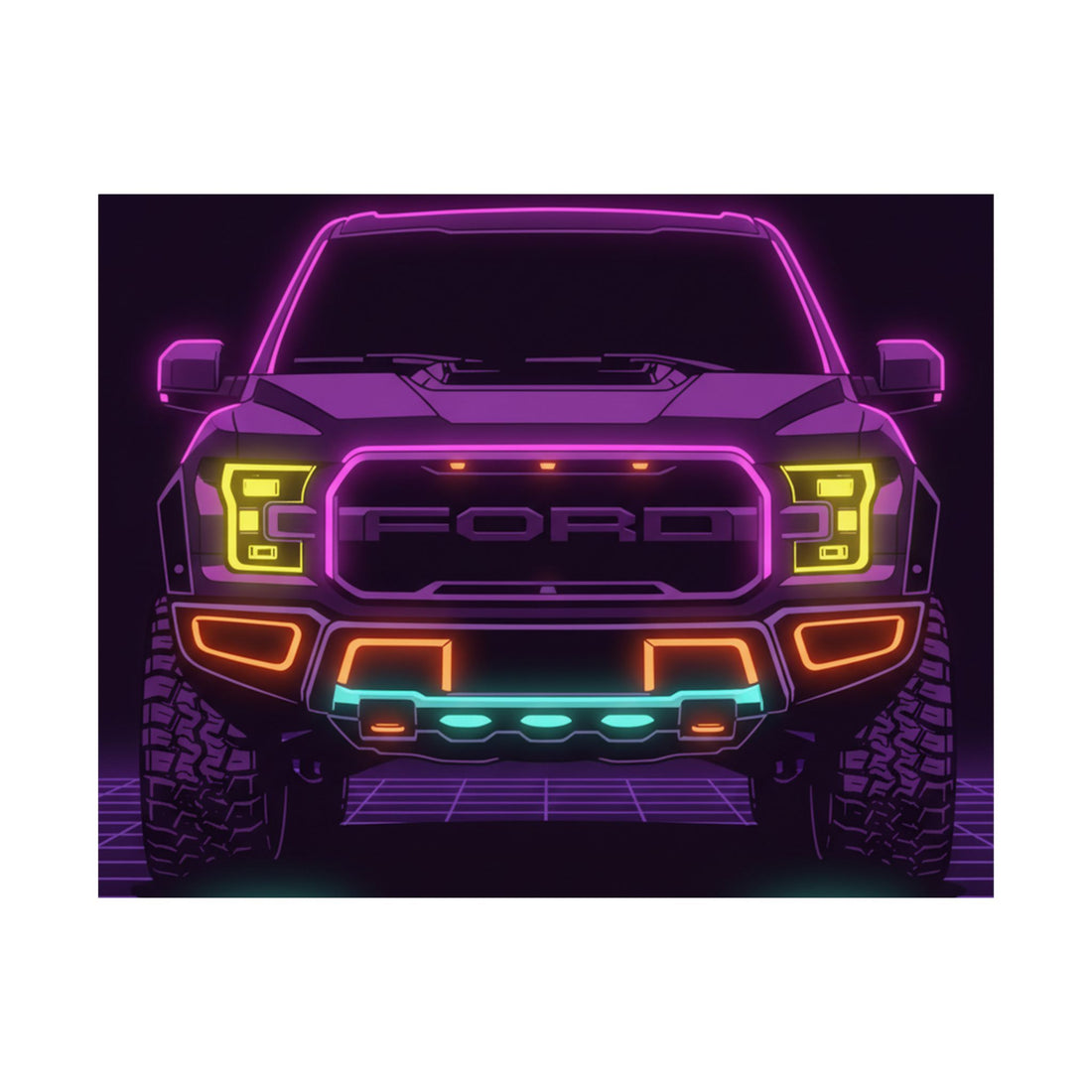 Ford F-150 Raptor Gen 2 Neon Synthwave Poster