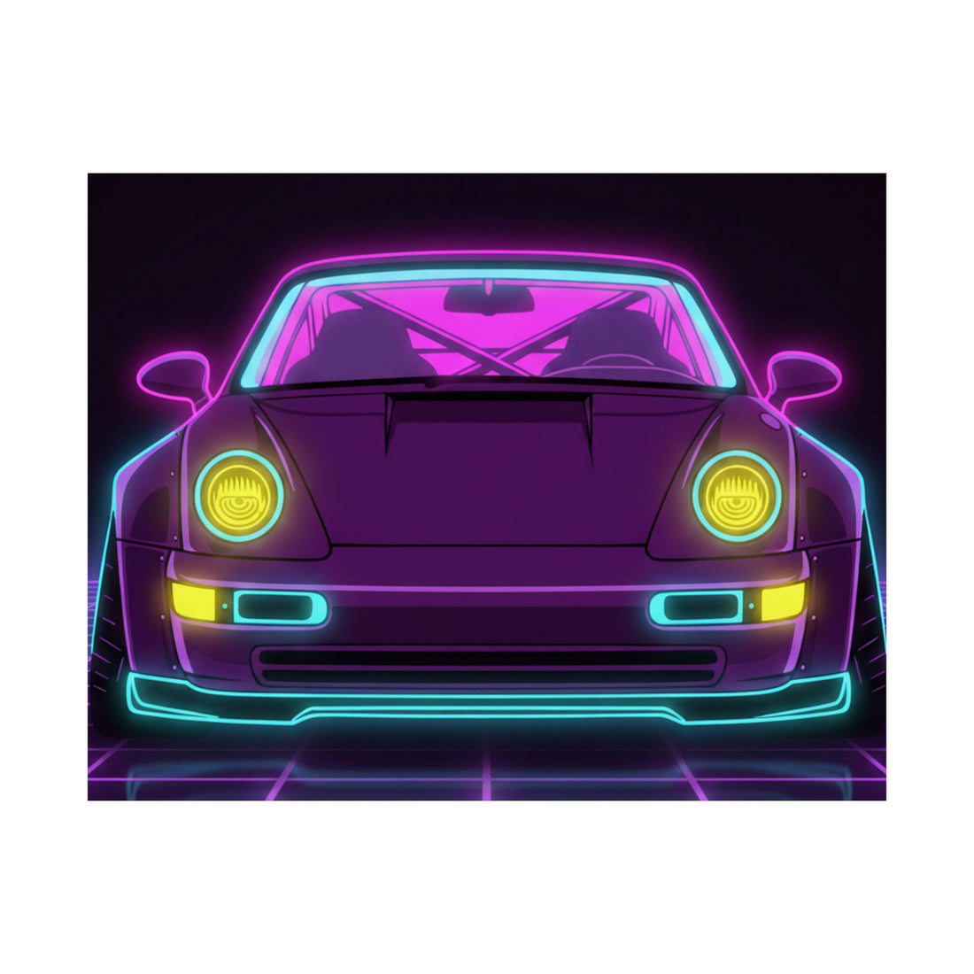 Porsche 964 Turbo Neon Synthwave Poster