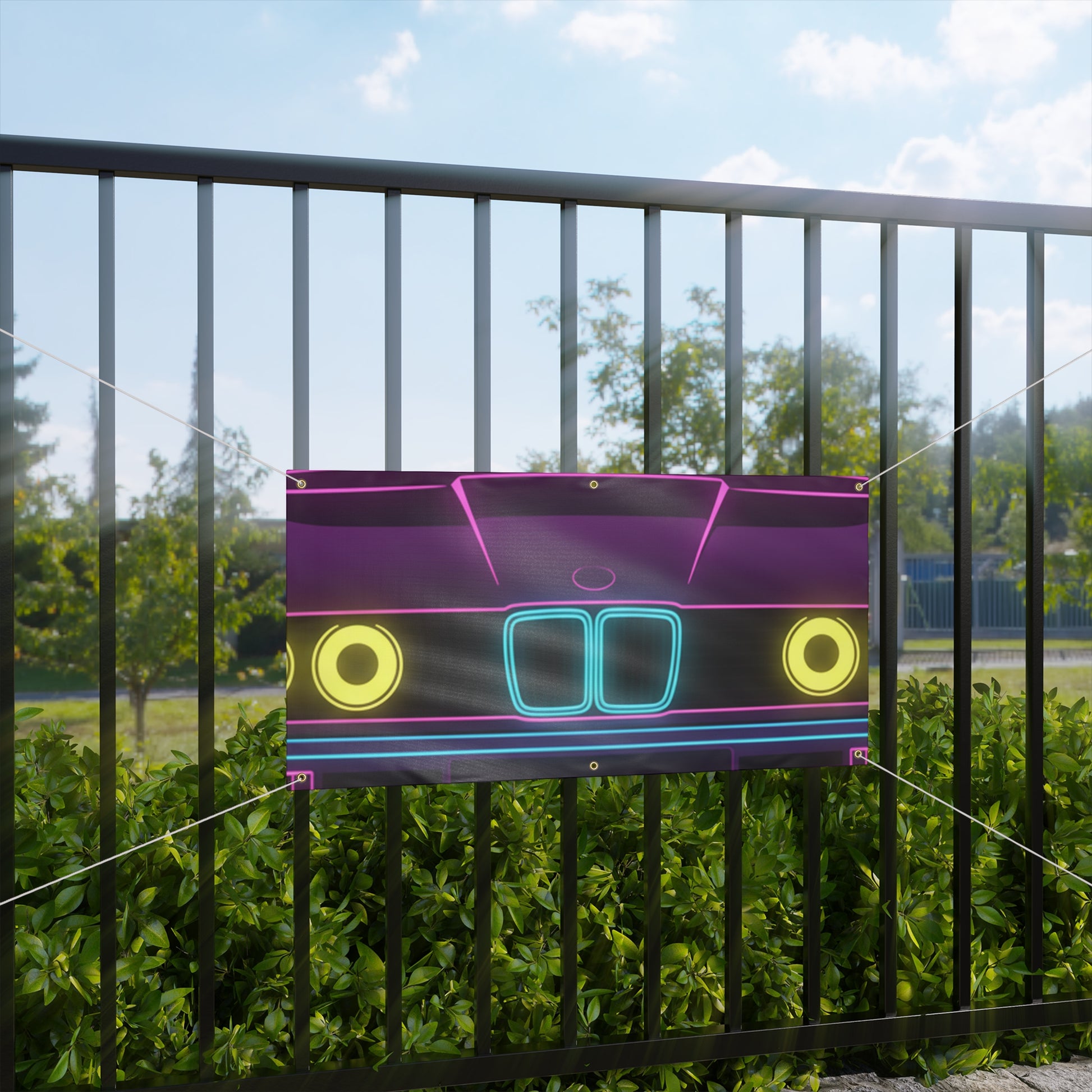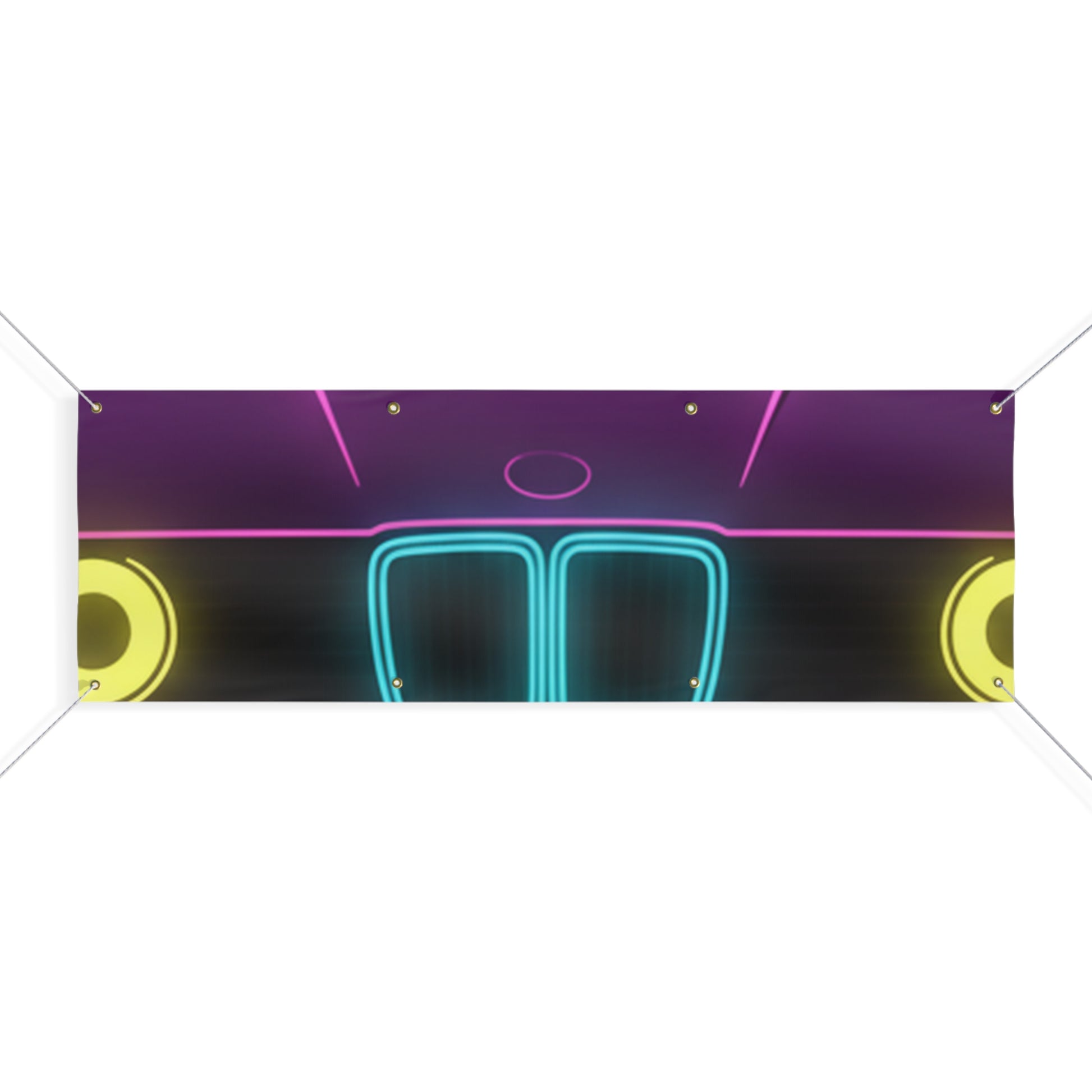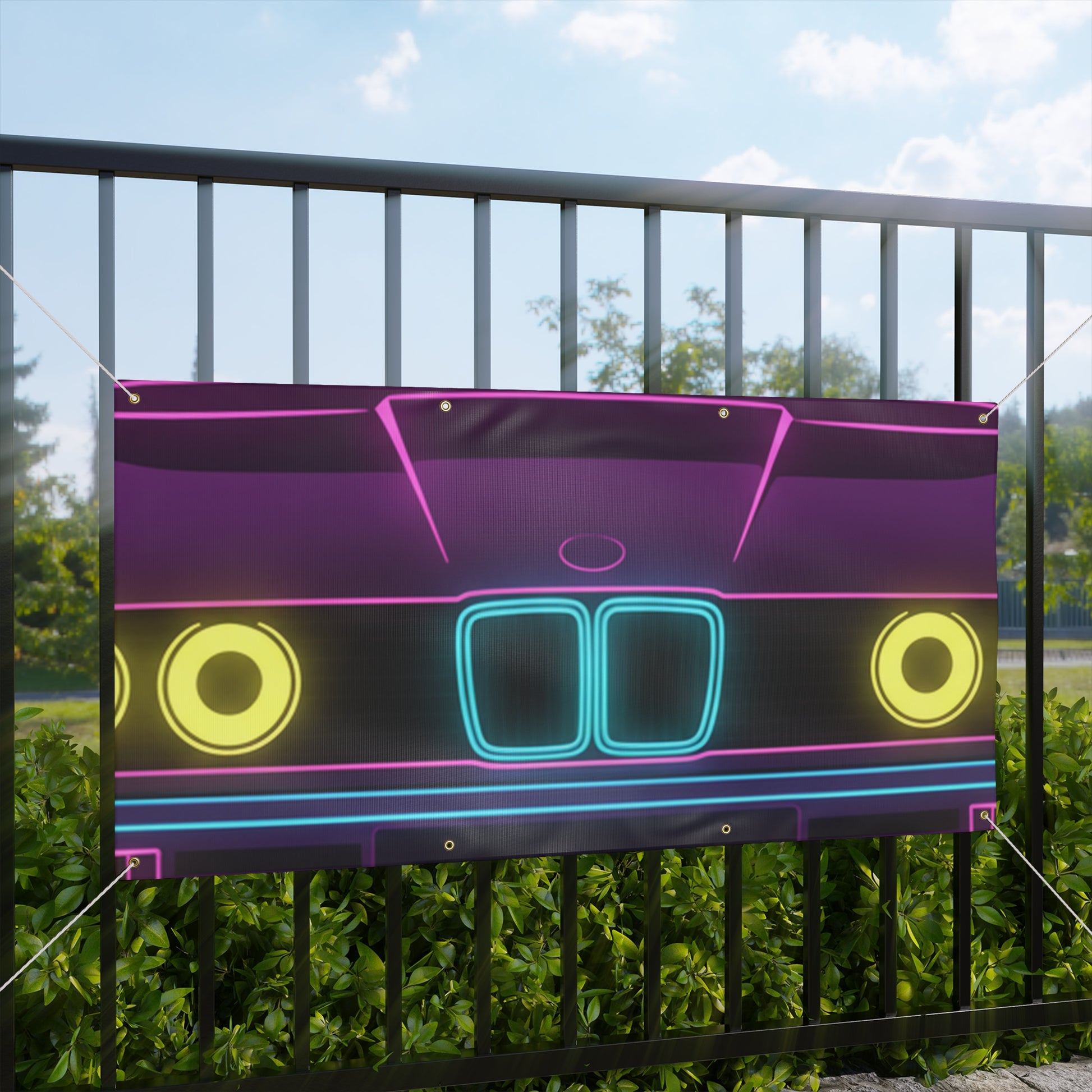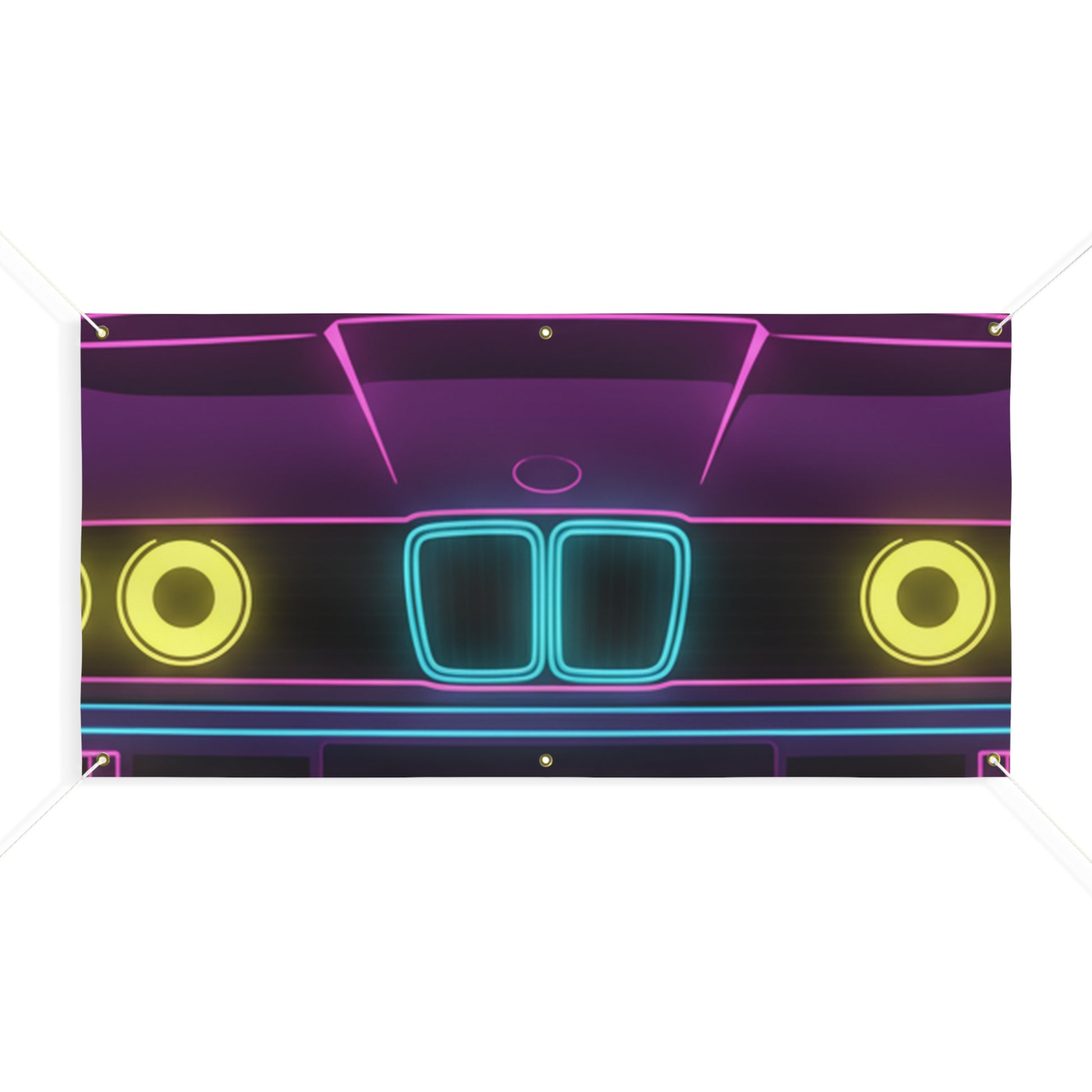 Turn your garage into a showroom. This BMW E30 banner features a bold, matte-finish print on water-resistant vinyl — built for indoor and outdoor display. Brass grommets and ropes included for easy hanging.