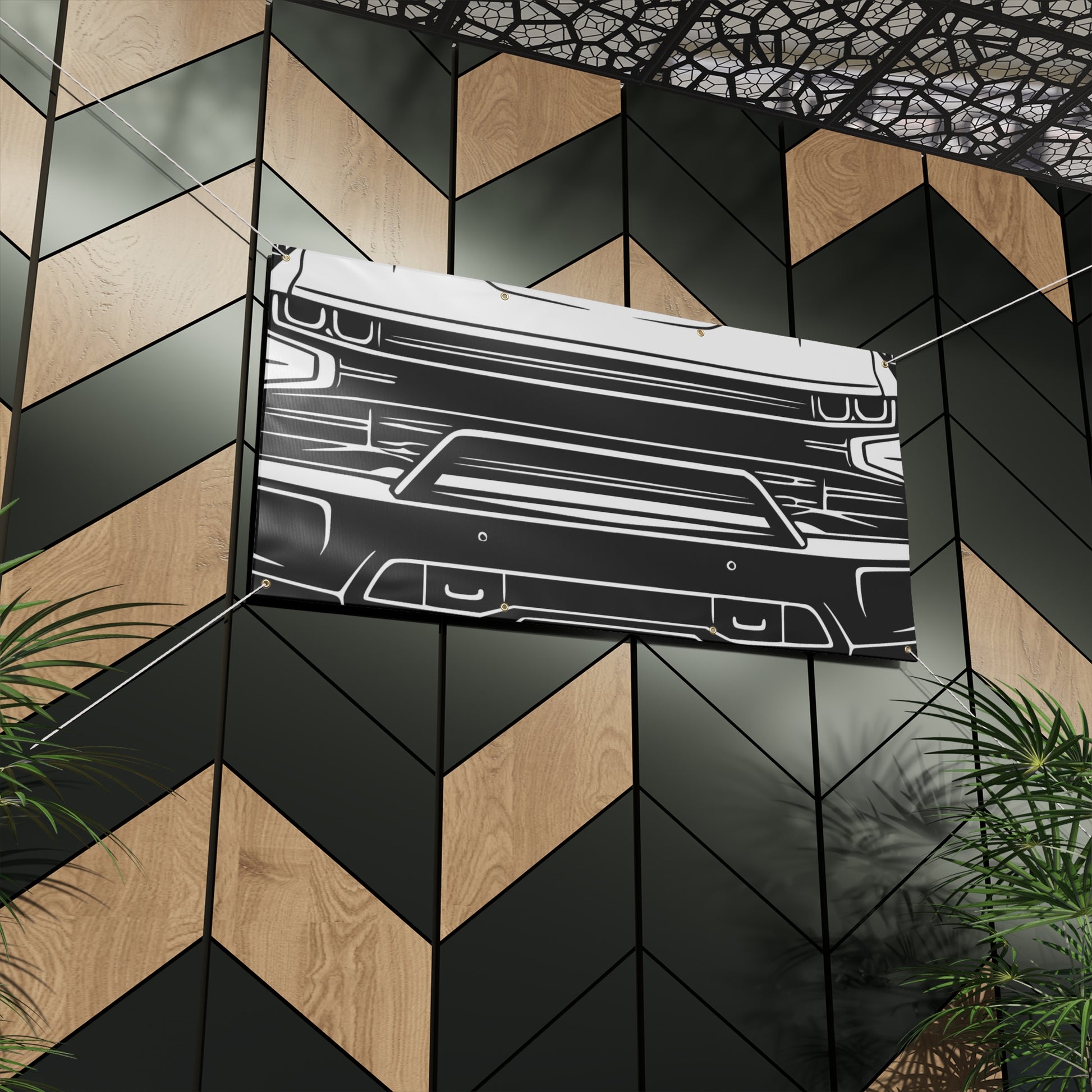 Turn your garage into a showroom. This Chevy Silverado Trail Boss (2019+) banner features a bold, matte-finish print on water-resistant vinyl — built for indoor and outdoor display. Brass grommets and ropes included for easy hanging.