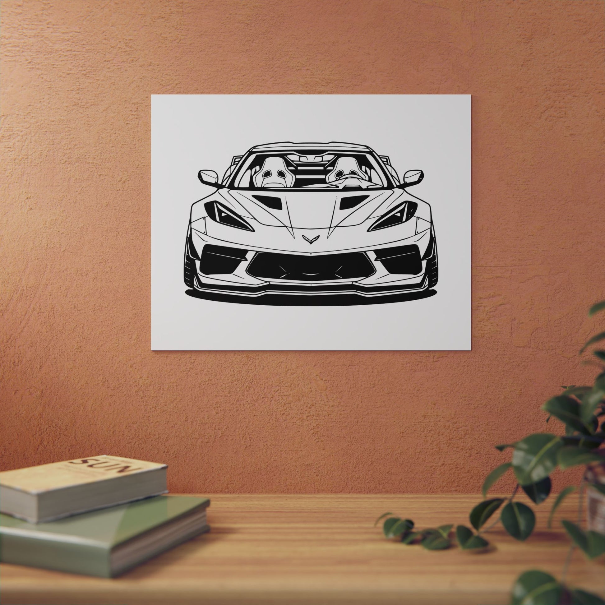 C8 Corvette — bold black and white vector art. Perfect for the garage, office, or anywhere you rep your ride.