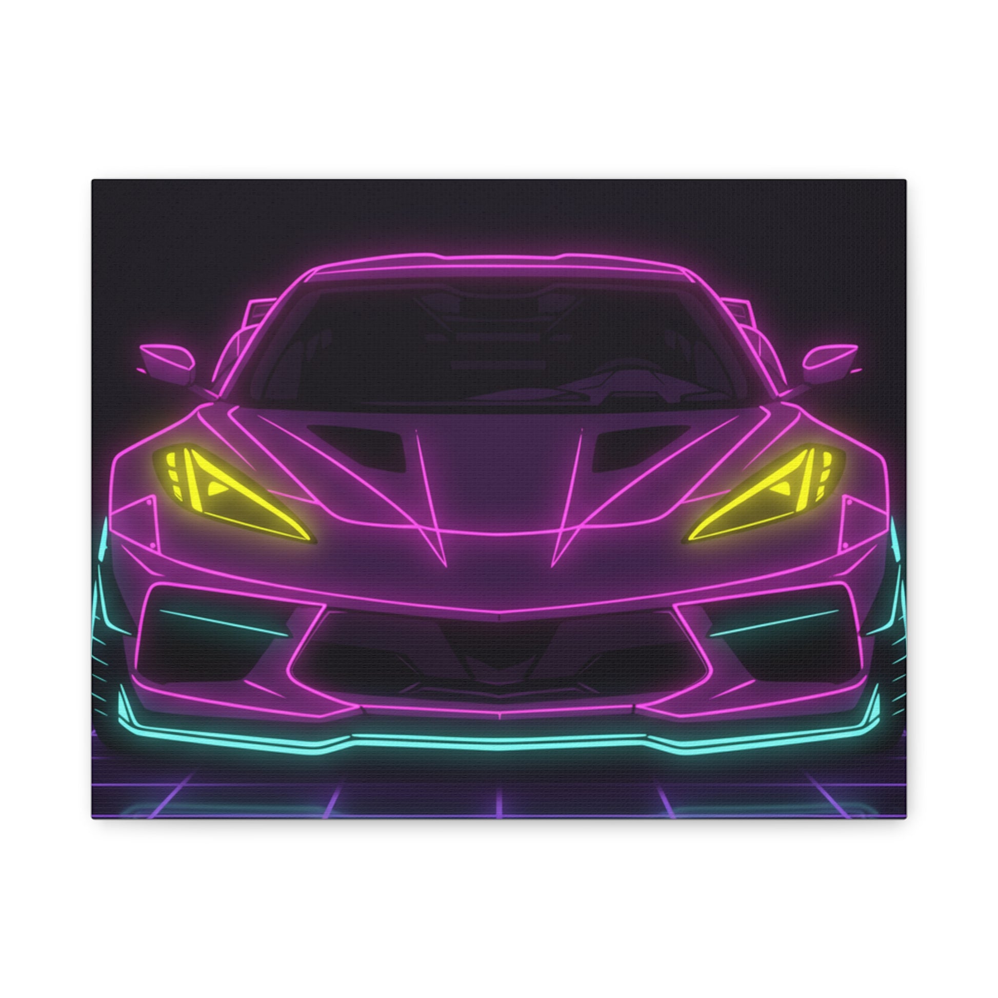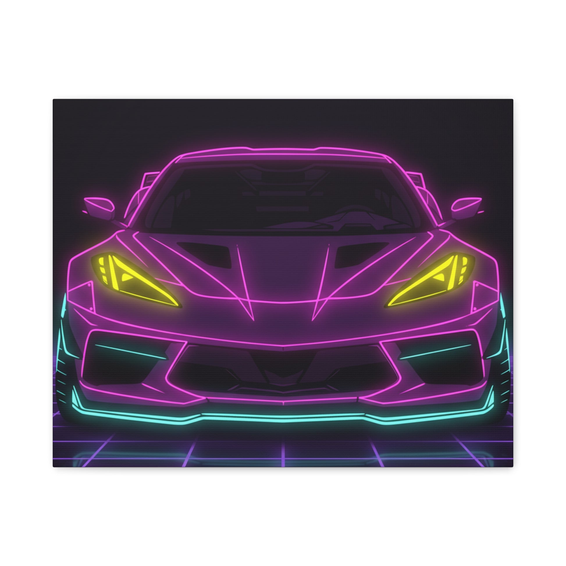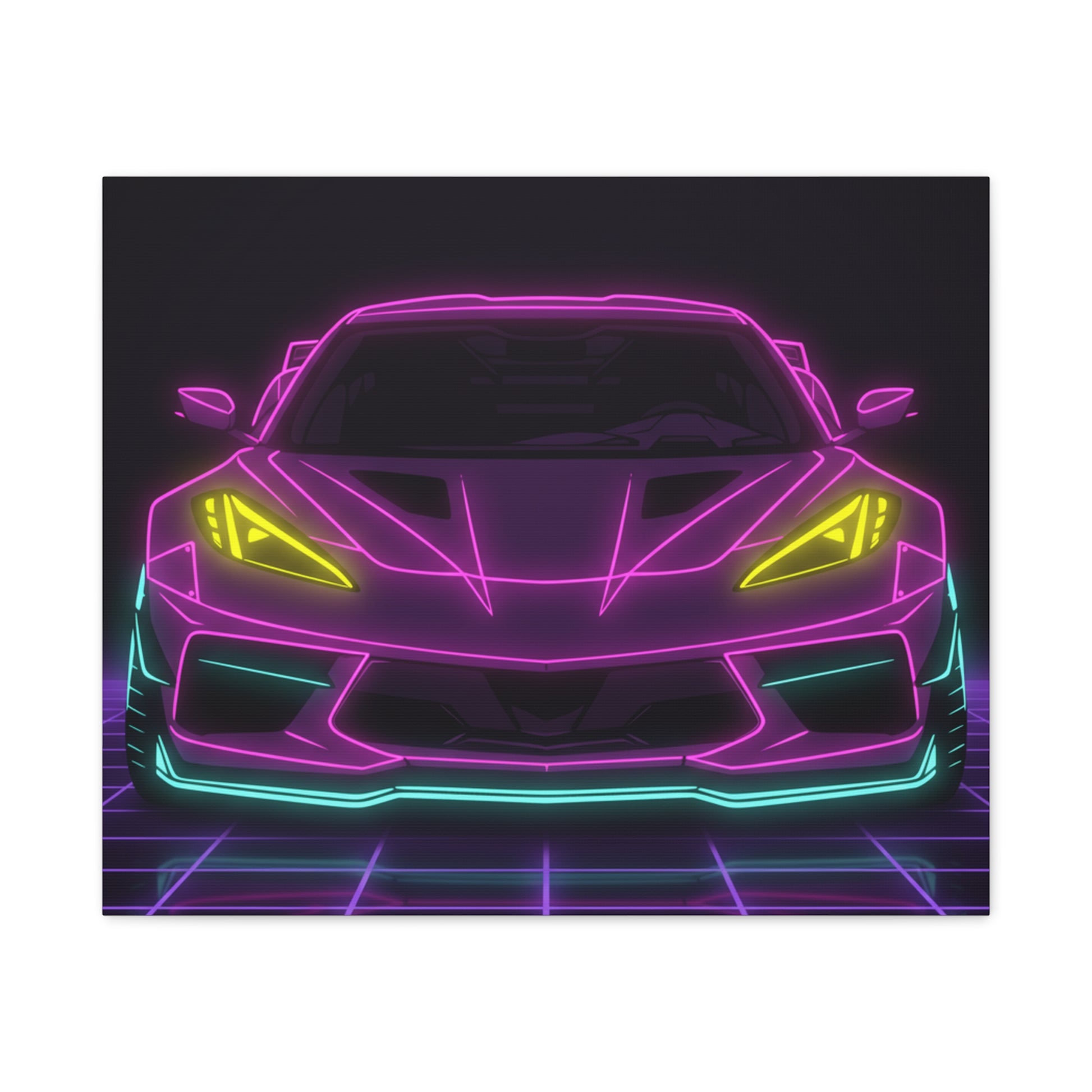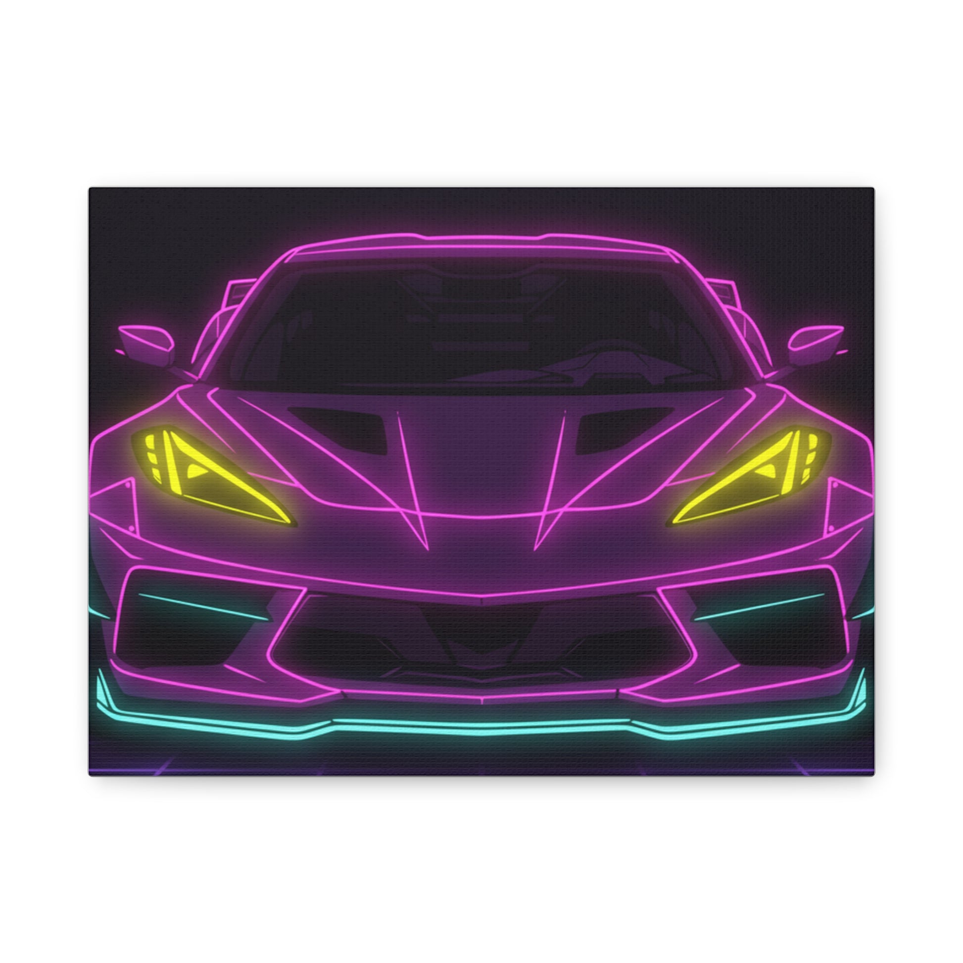 Corvette C8 (2020+) Neon Synthwave Canvas Wall Art