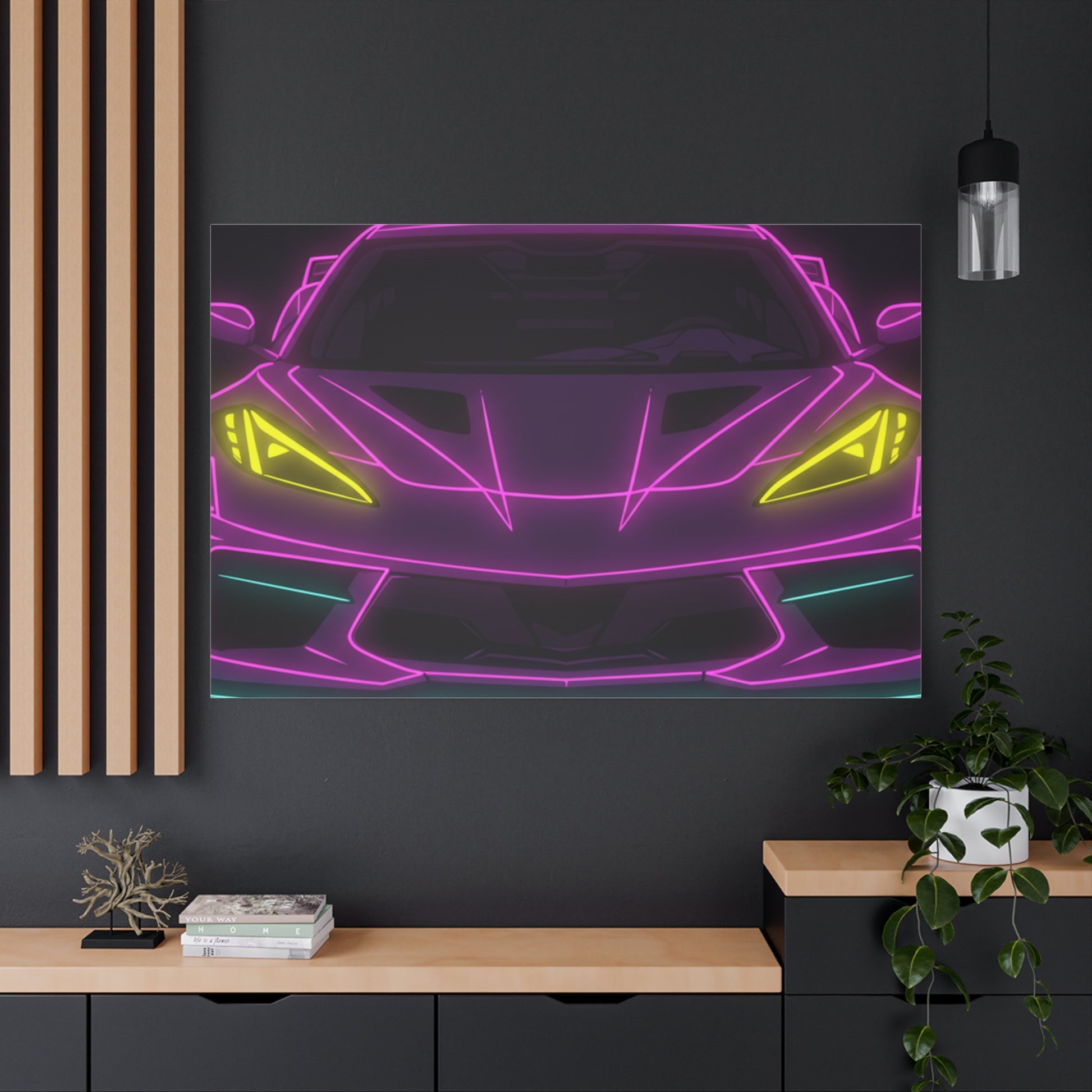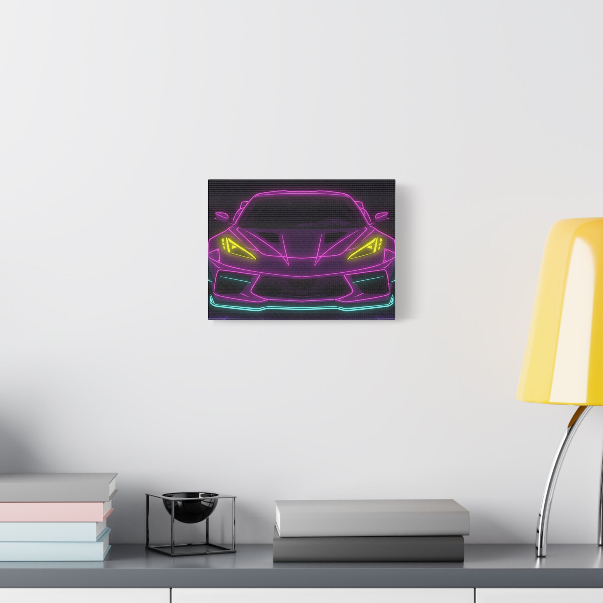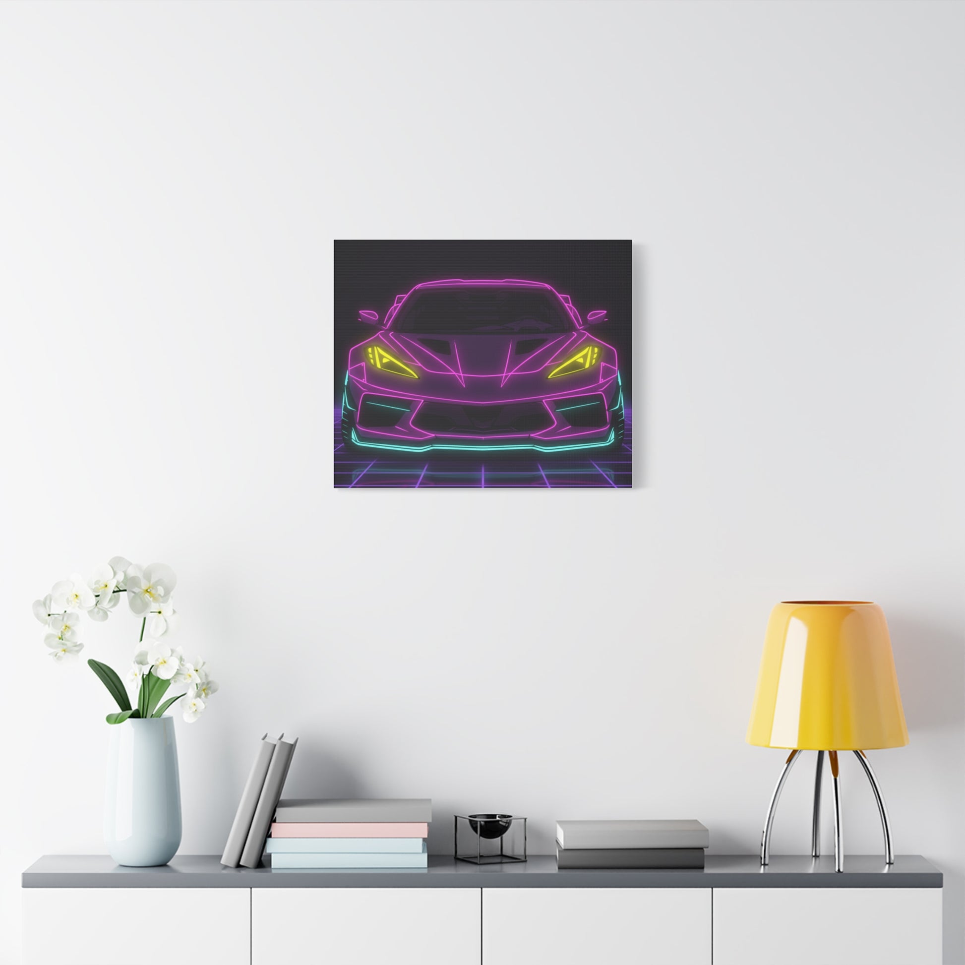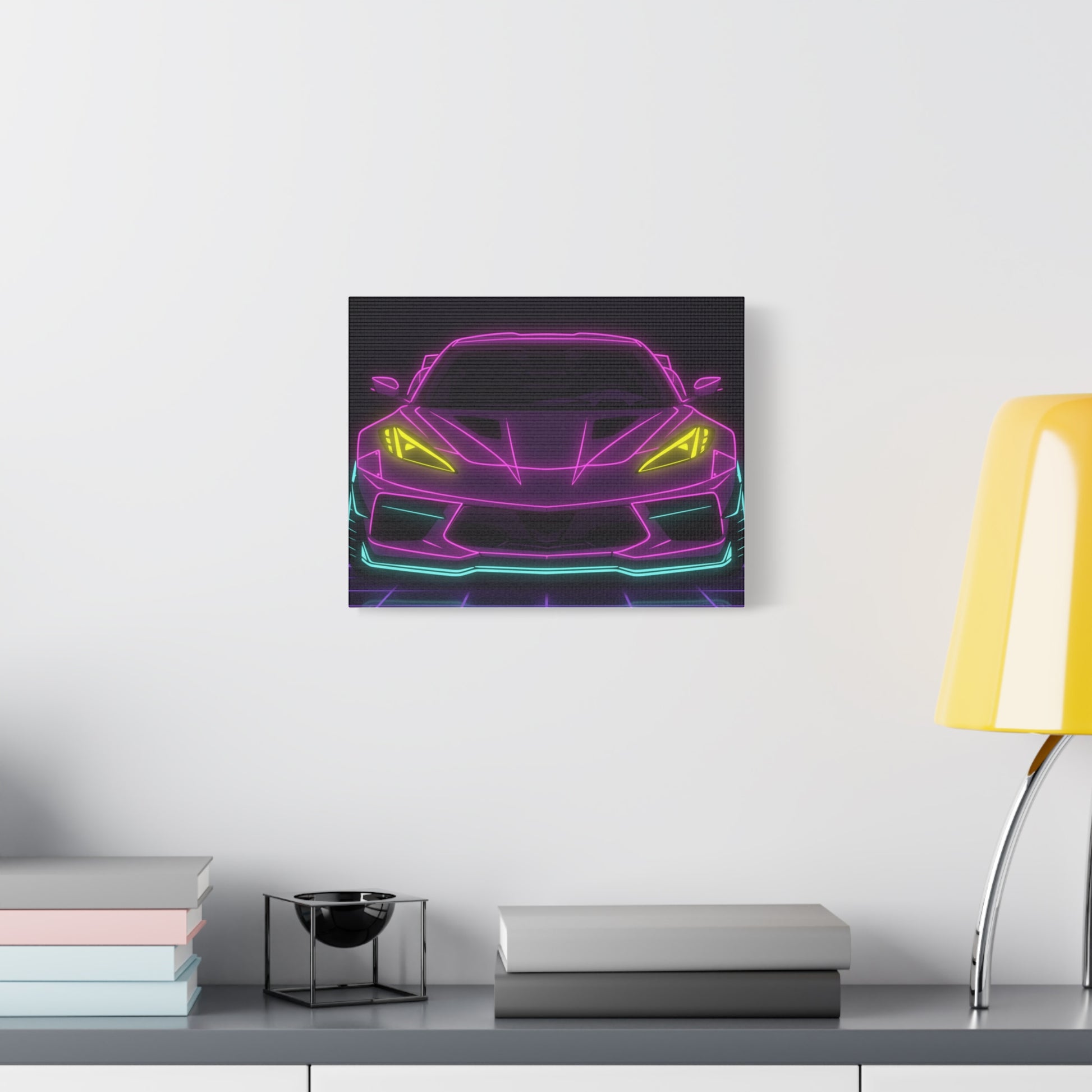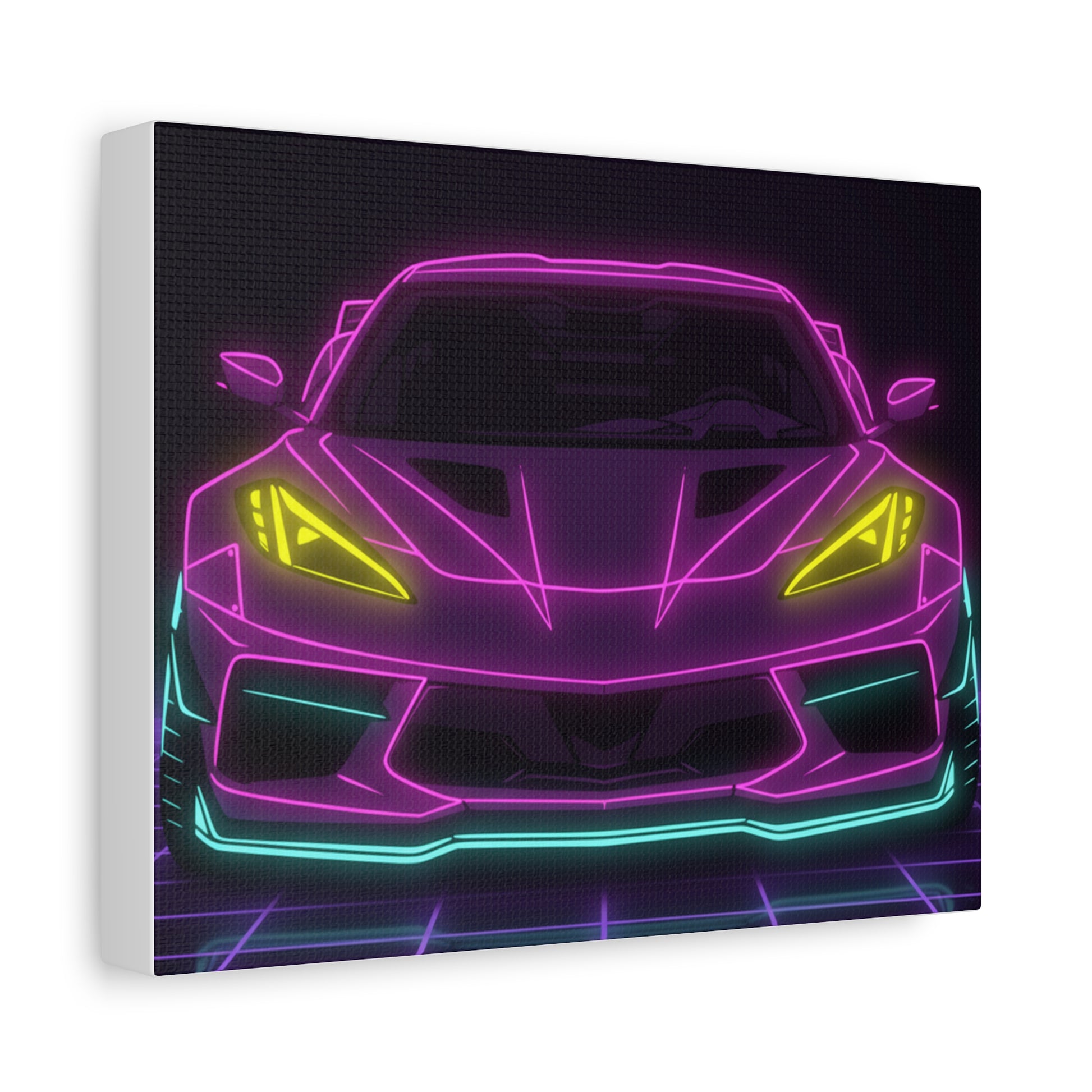 Corvette C8 (2020+) Neon Synthwave Canvas Wall Art