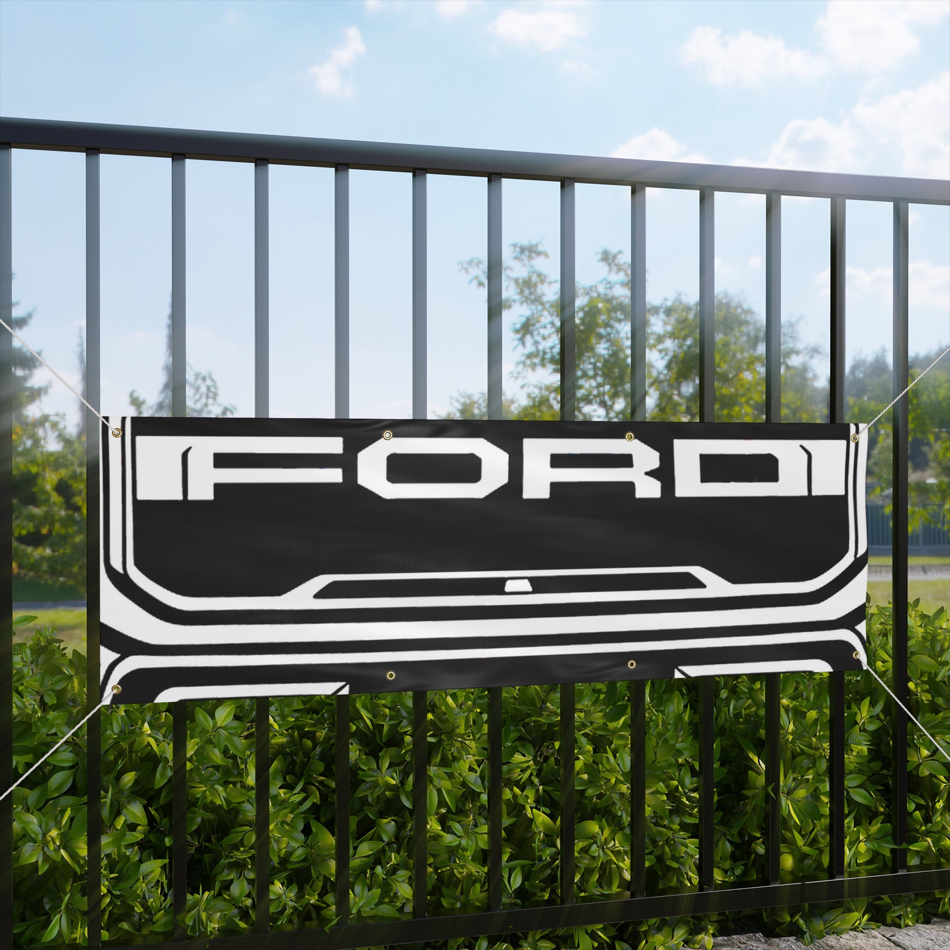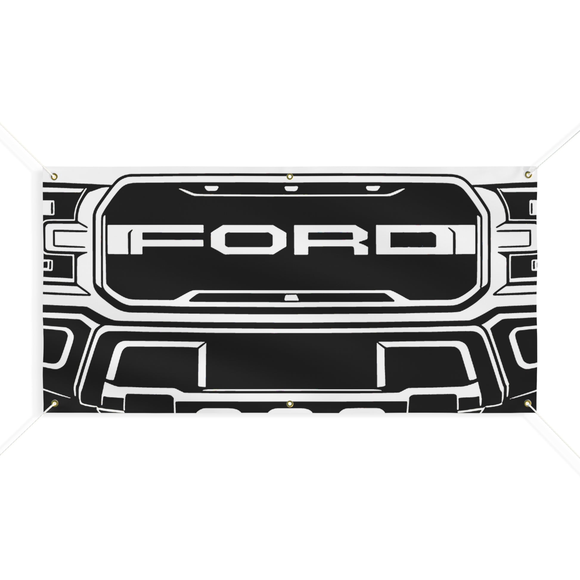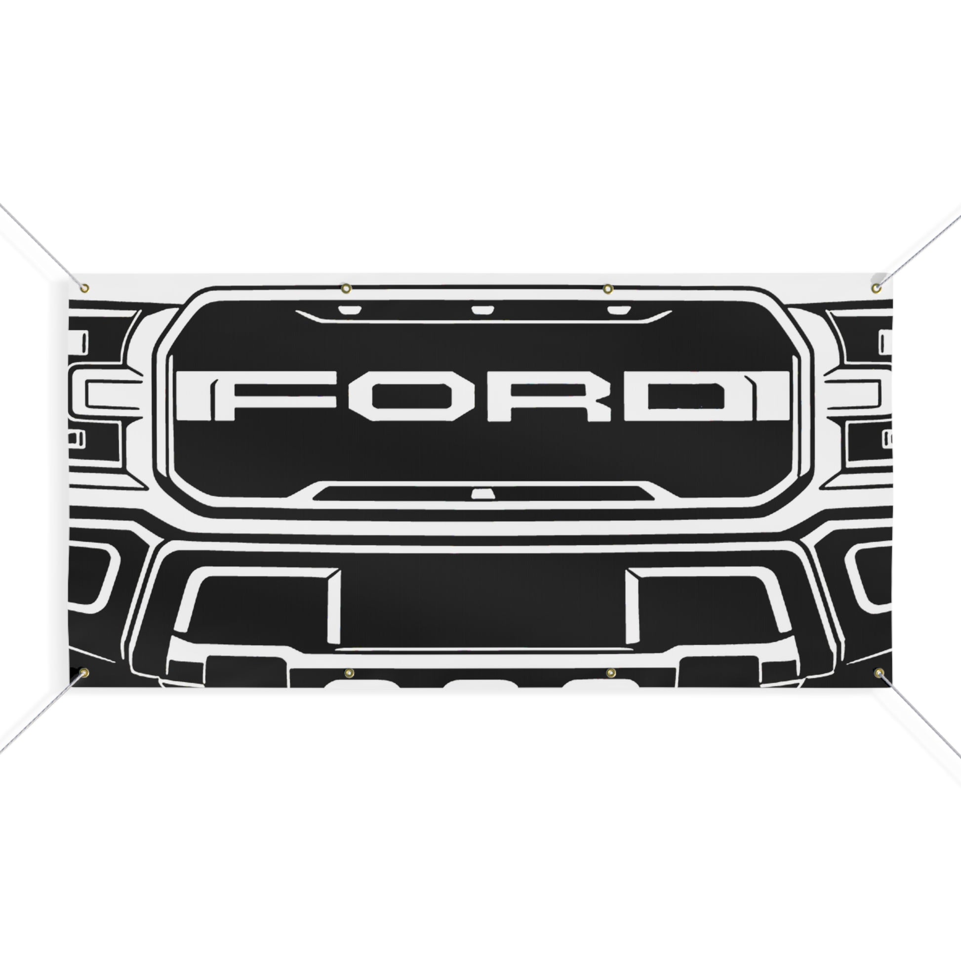Turn your garage into a showroom. This Ford F-150 Raptor Gen 2 banner features a bold, matte-finish print on water-resistant vinyl — built for indoor and outdoor display. Brass grommets and ropes included for easy hanging.