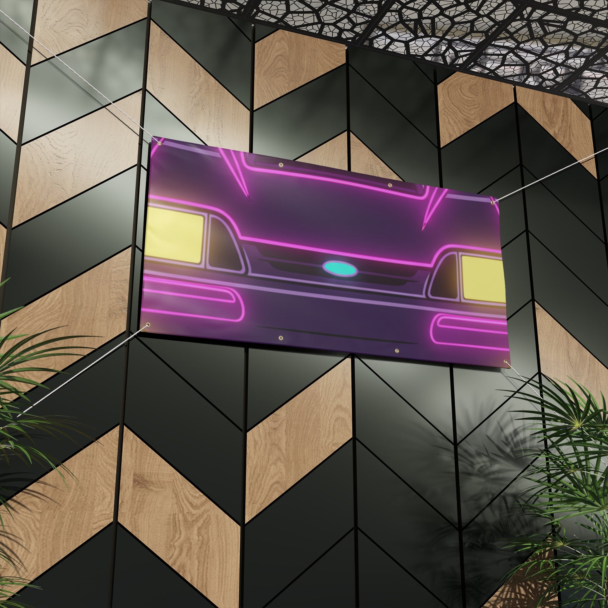 Turn your garage into a showroom. This Ford Mustang Fox Body GT banner features a bold, matte-finish print on water-resistant vinyl — built for indoor and outdoor display. Brass grommets and ropes included for easy hanging.