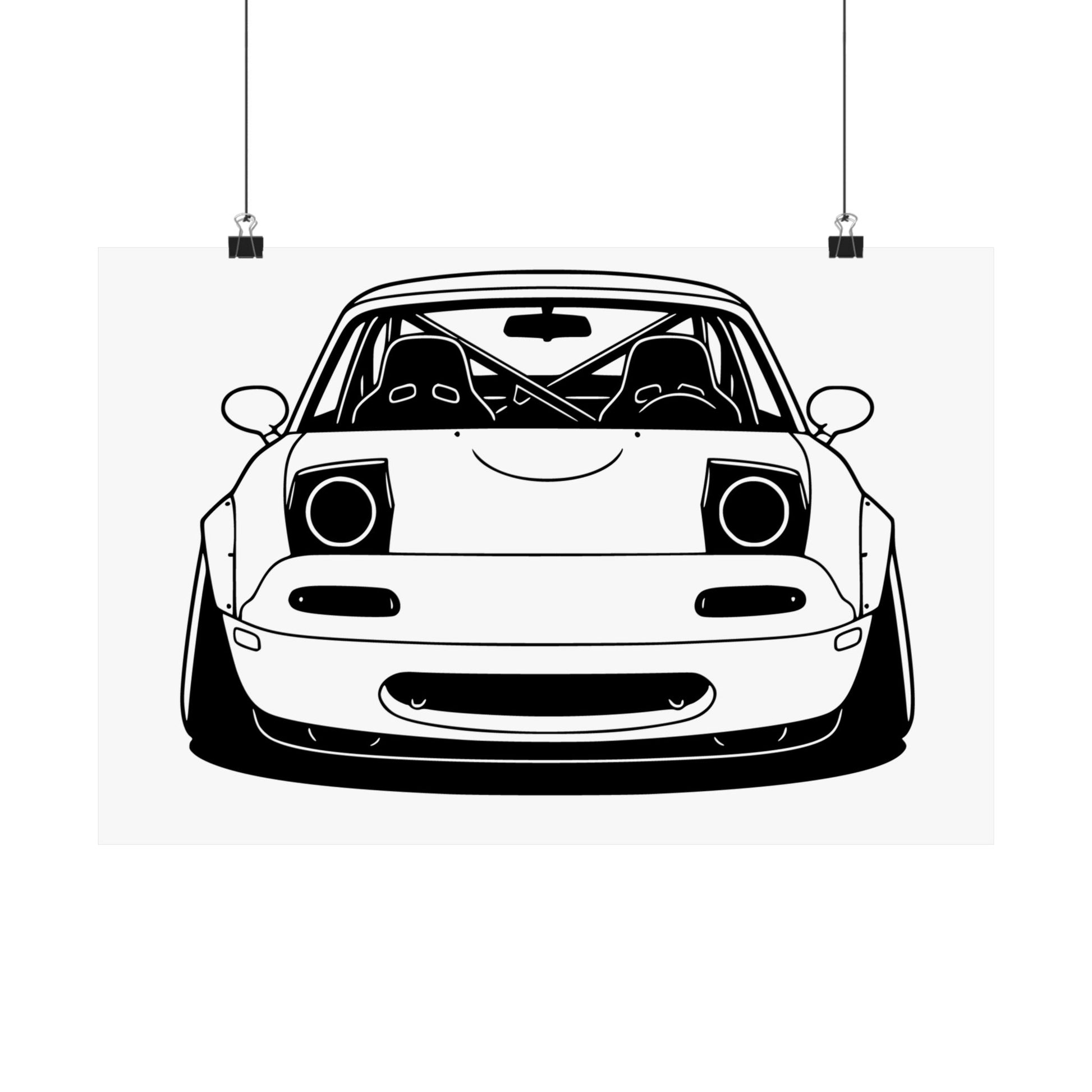 Miata NA — bold black and white vector art. Perfect for the garage, office, or anywhere you rep your ride.