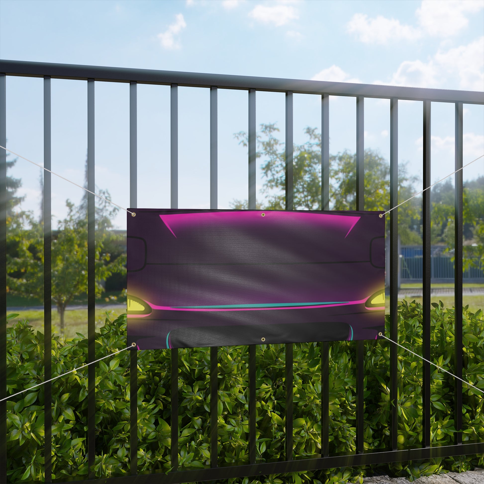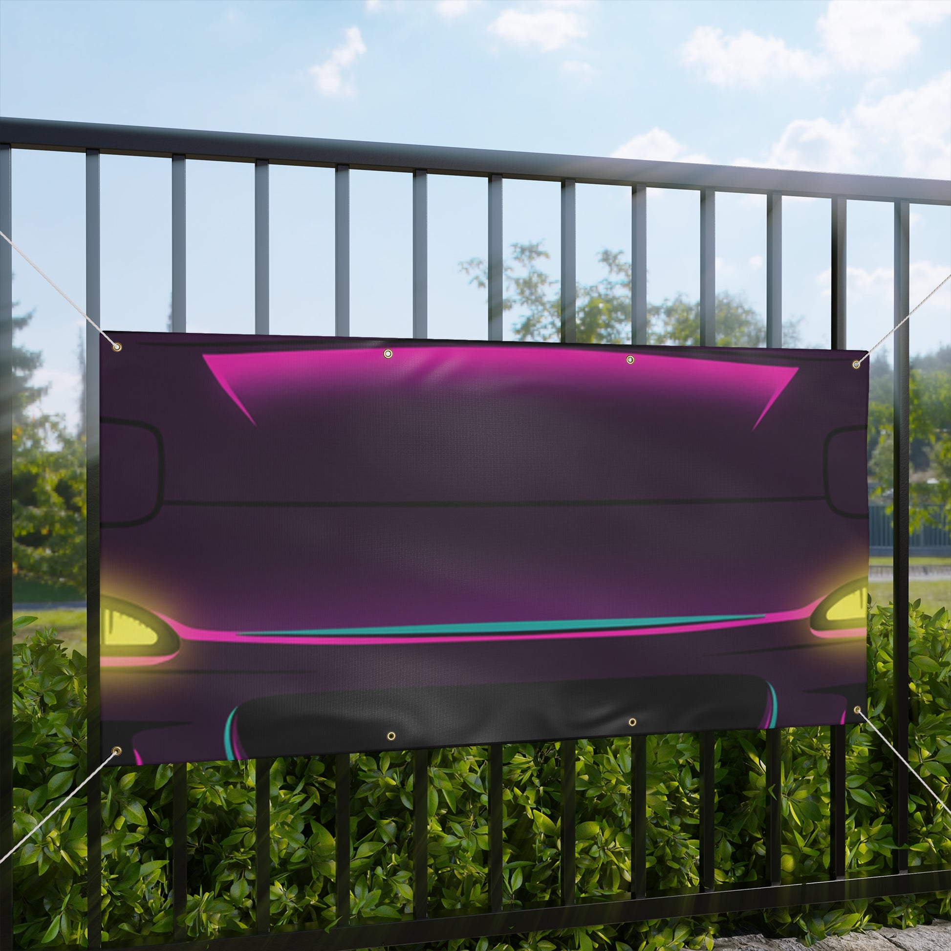 Turn your garage into a showroom. This Mazda RX-7 FD banner features a bold, matte-finish print on water-resistant vinyl — built for indoor and outdoor display. Brass grommets and ropes included for easy hanging.