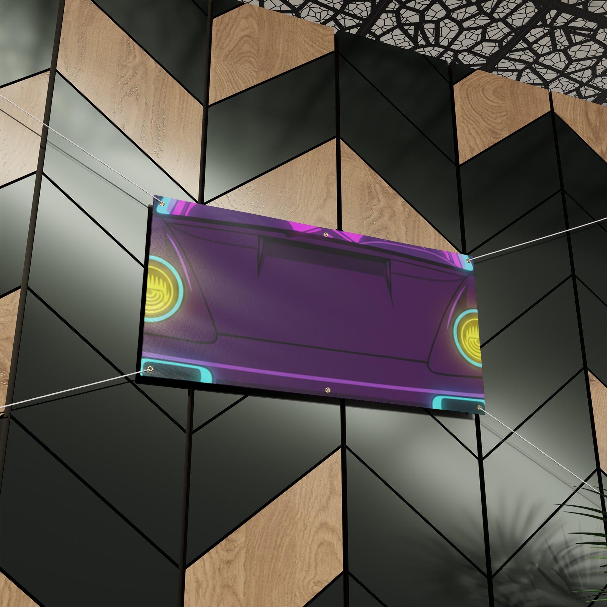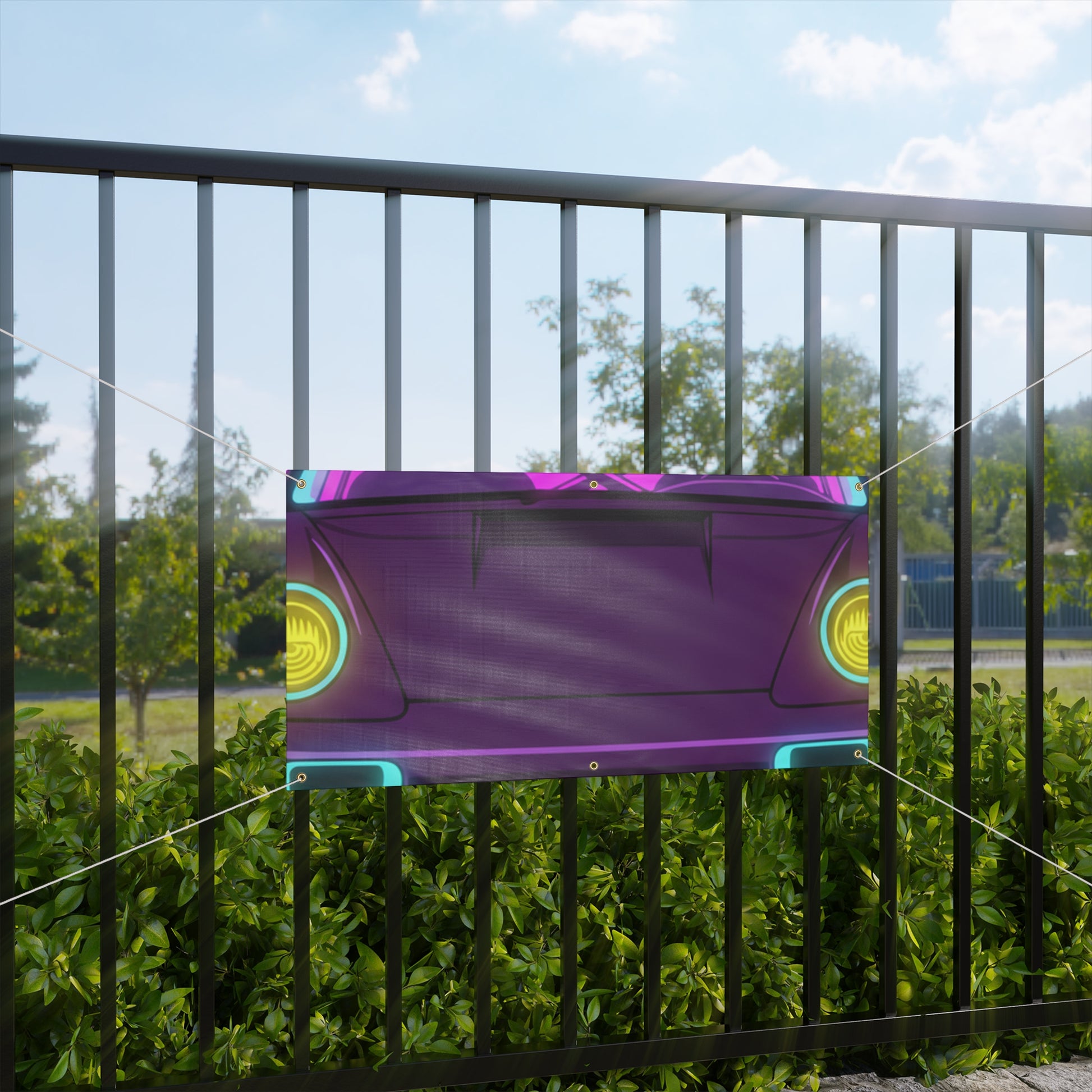 Turn your garage into a showroom. This Porsche 964 Turbo banner features a bold, matte-finish print on water-resistant vinyl — built for indoor and outdoor display. Brass grommets and ropes included for easy hanging.